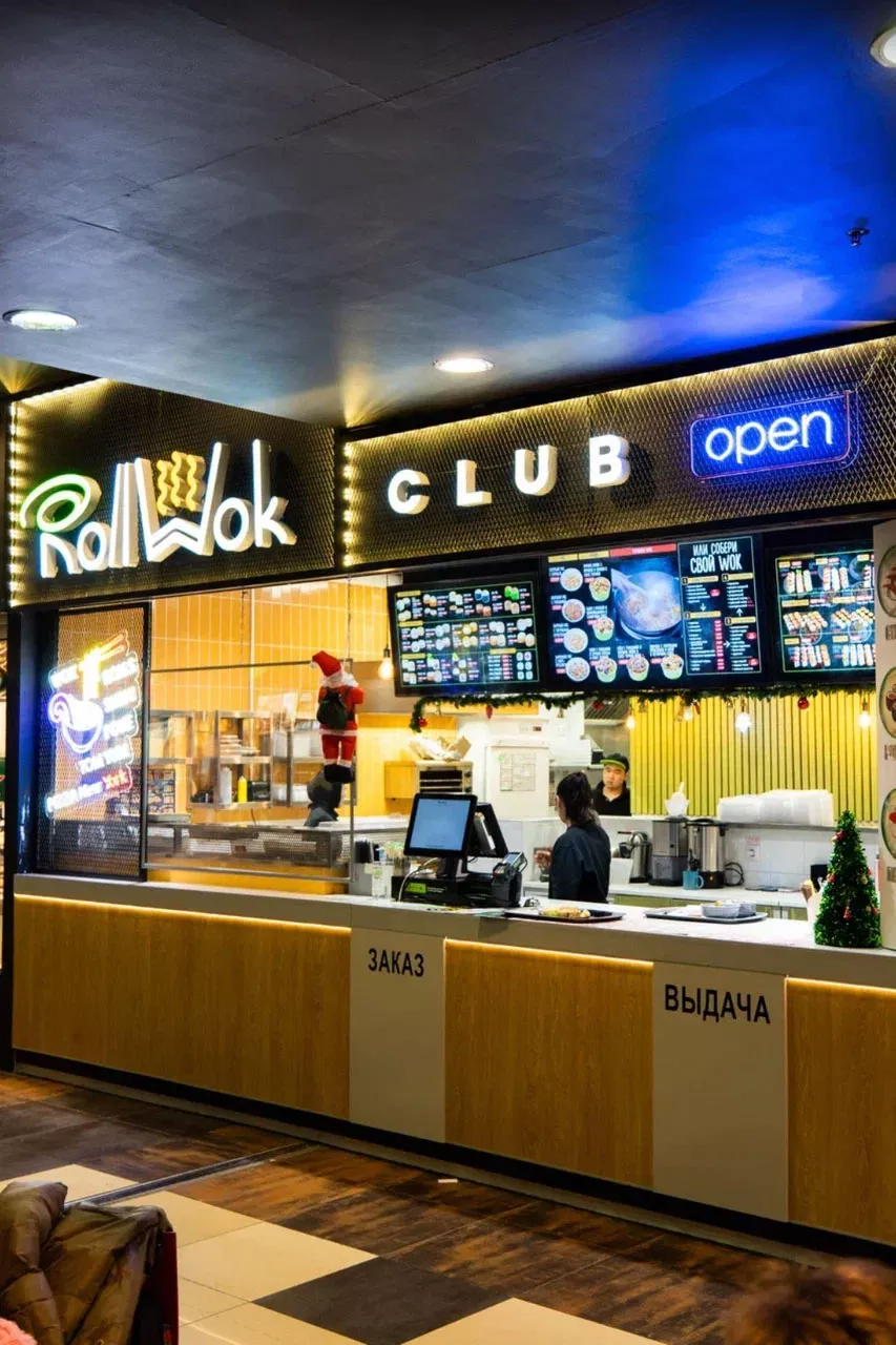 Брендирование торговых точек суши-бара «Roll Wok Club» в Лесном