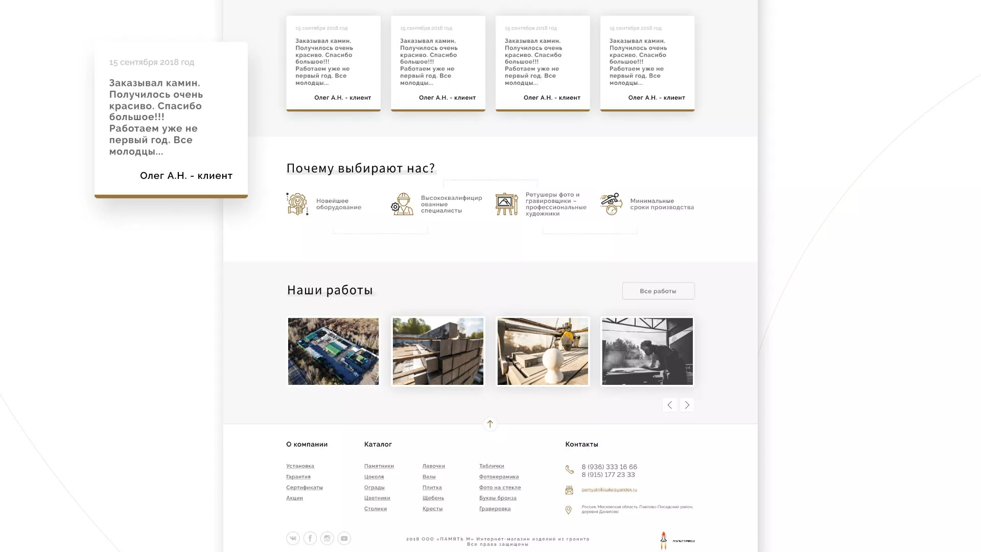 Разработка логотипа, фирменного стиля и сайта в Лесном для компании «Память-М». Компания является предприятием по изготовлению всех видов надгробных сооружений: памятников, цоколей на могилу, оградок, столов, лавочек, ваз, балясин, плитки, мемориальных комплексов. Компании «Память-М» изготавливает все виды мемориальных изделий на собственном производстве в Лесном.