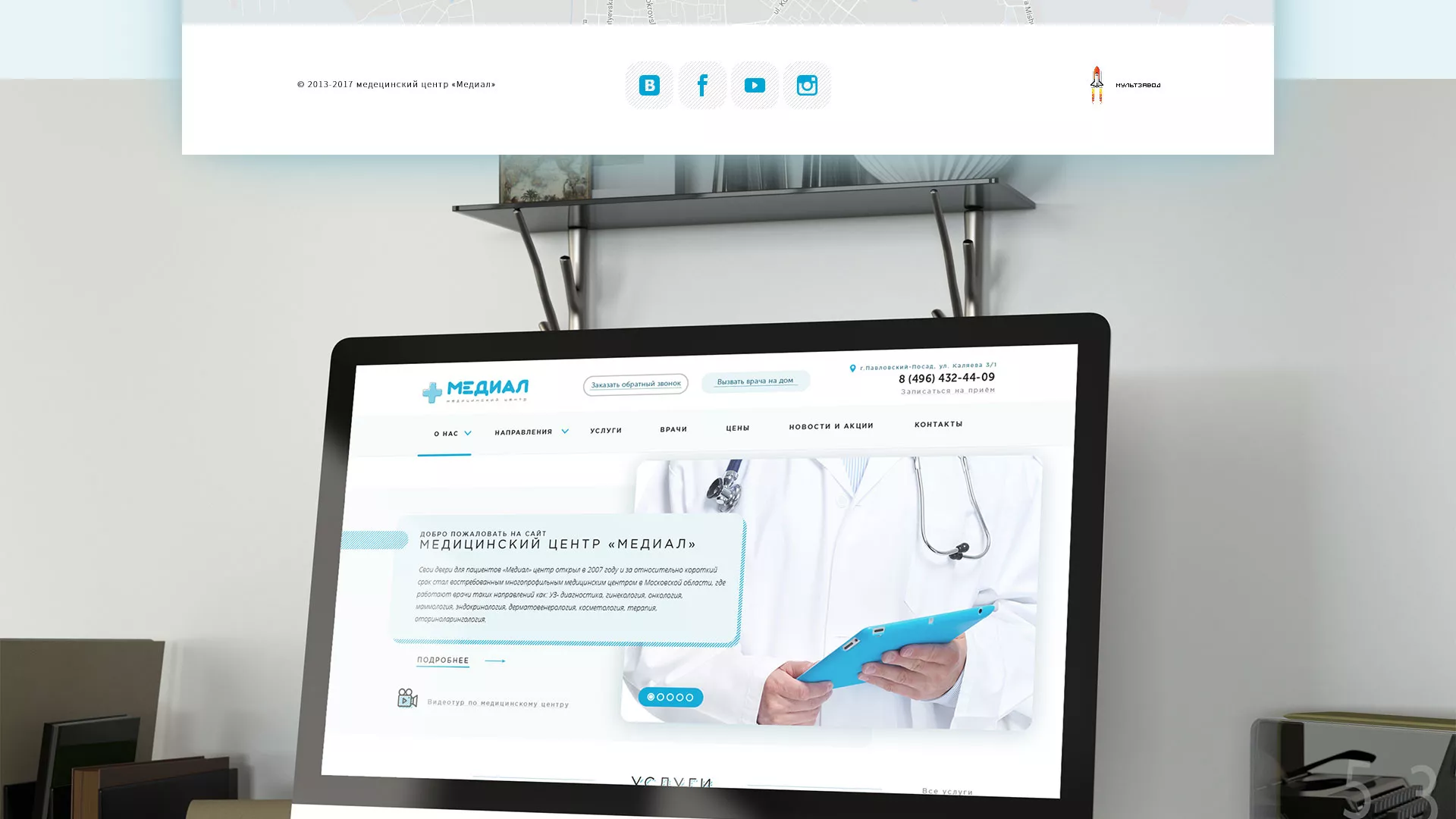 Сайт медцентра «Медиал» в Лесном является «лицом» учреждения, презентует его с лучших сторон, доступно информирует об оказываемых услугах. Он легкий в навигации и использовании. На таком сайте должно быть просто узнать о врачах, услугах, записаться на прием всем возрастным категориям, от 16 до 60 лет. Это должен быть современный, функциональный и эстетически приятный сайт. В рамках создания сайта для медицинского центра компания «Мультзавод» в Лесном ориентируется именно на эту задачу.